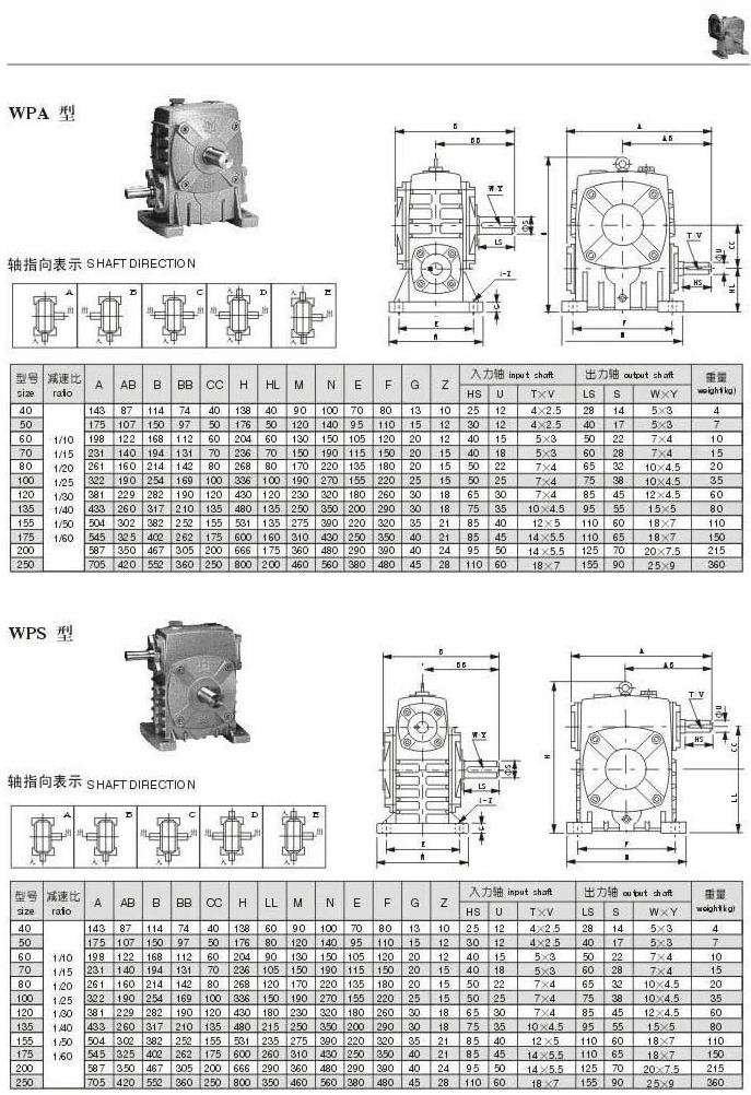 WAP型和WPS型型號參數(shù)圖表