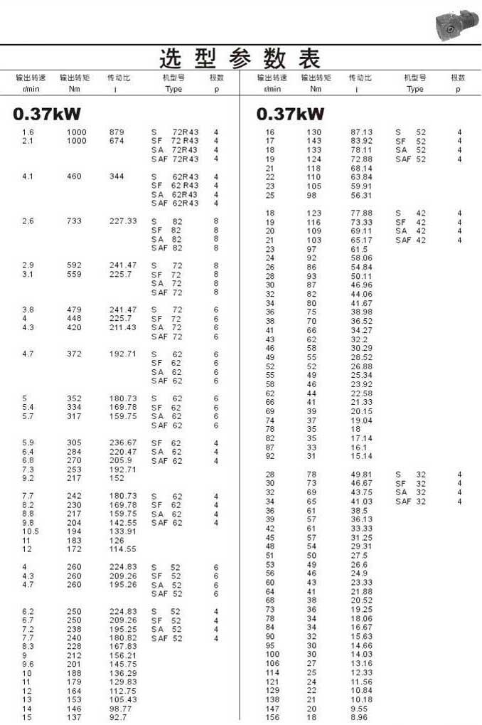 選型參數(shù)表0.37kW(續(xù))
